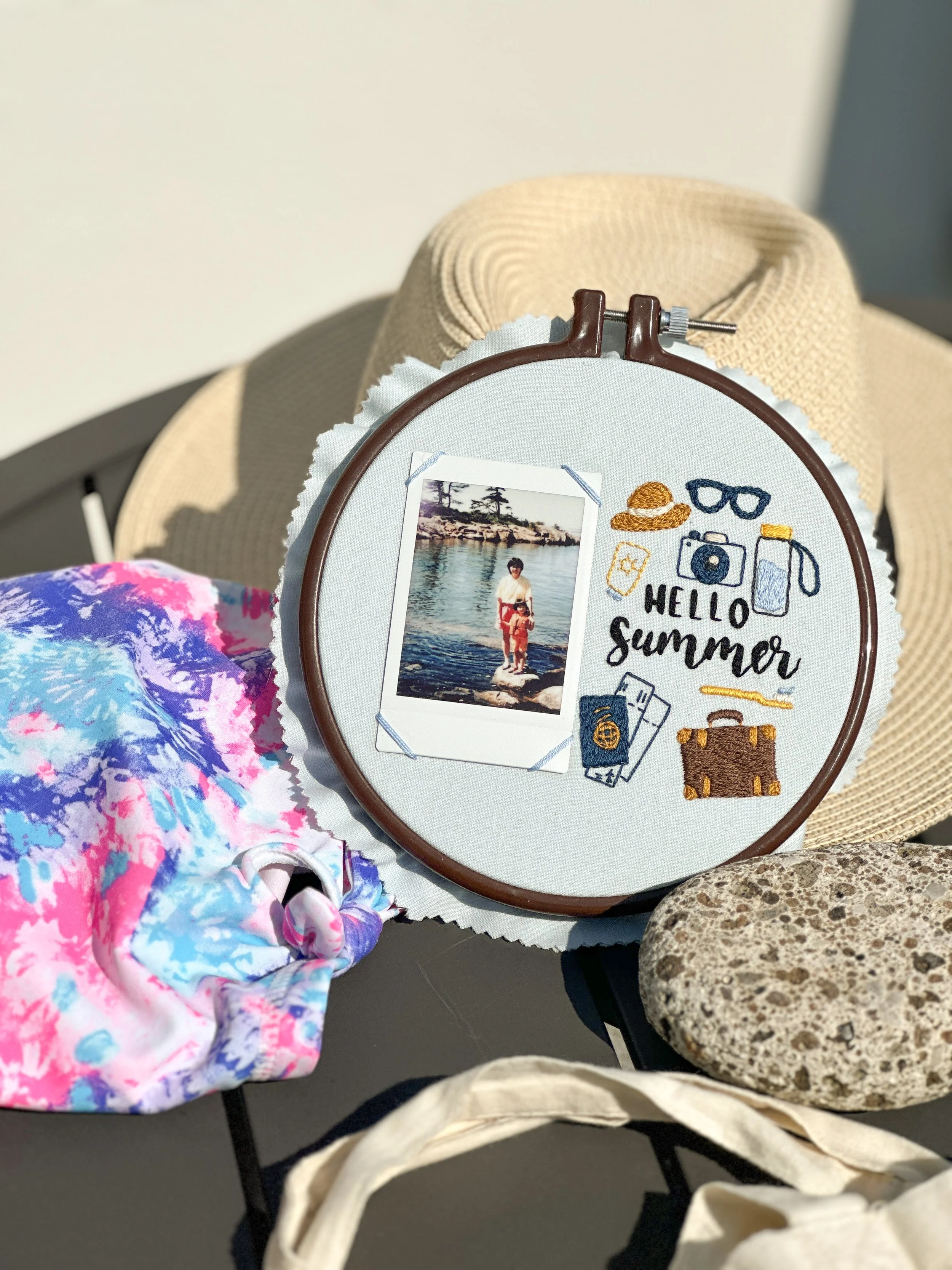 Make a little frame for your fave summer photos, or just embroider the motif to use as decoration or give as a gift!